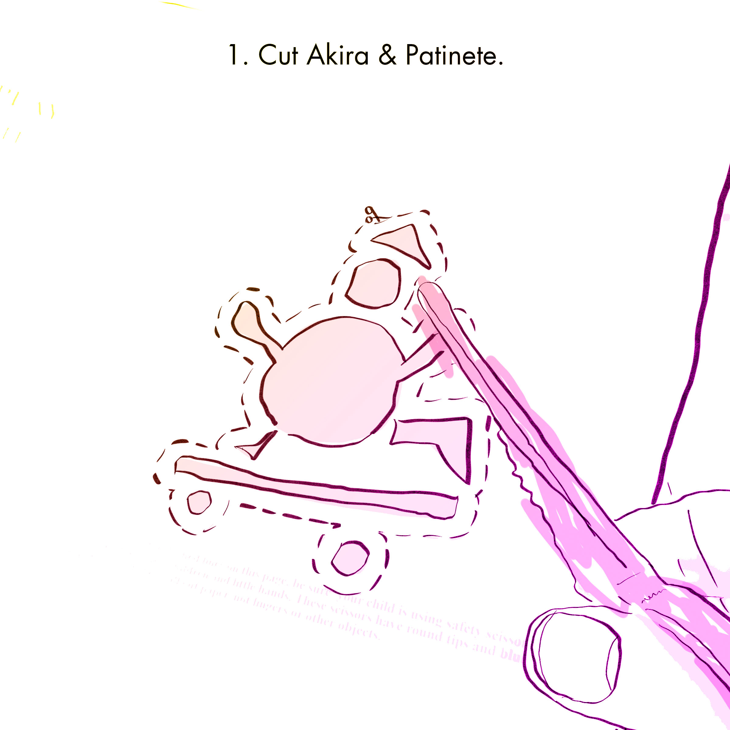 Click on this link and download Akira and Patinete to print on a Dina 4 sheet.