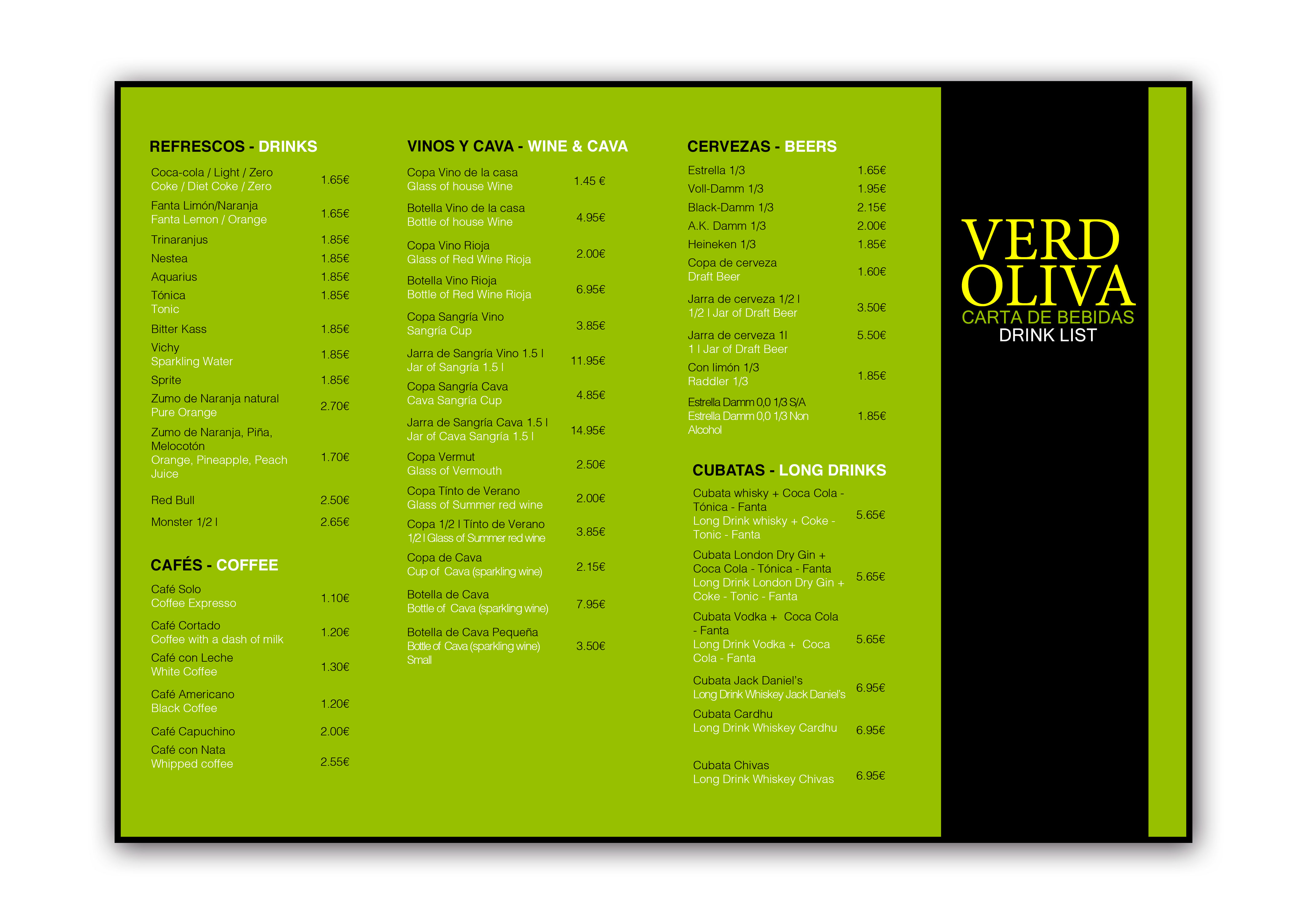 CARTA DE BEBIDAS